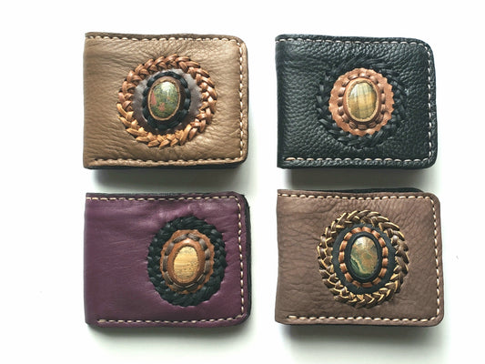 Western Leather Bifold Wallet With Interchangeable Stone feature
