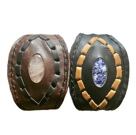 Handmade genuine leather wallet bracelets/ cuffs with gemstone