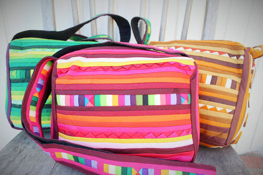 Handmade Lisu hill tribe intricate patchwork bowling / duffel bag