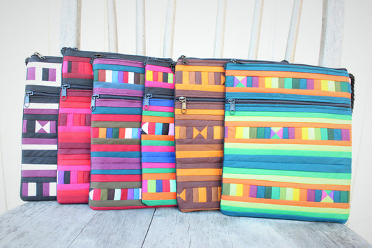 Handmade Lisu hill tribe intricate patchwork crossbody toaster satchel bags